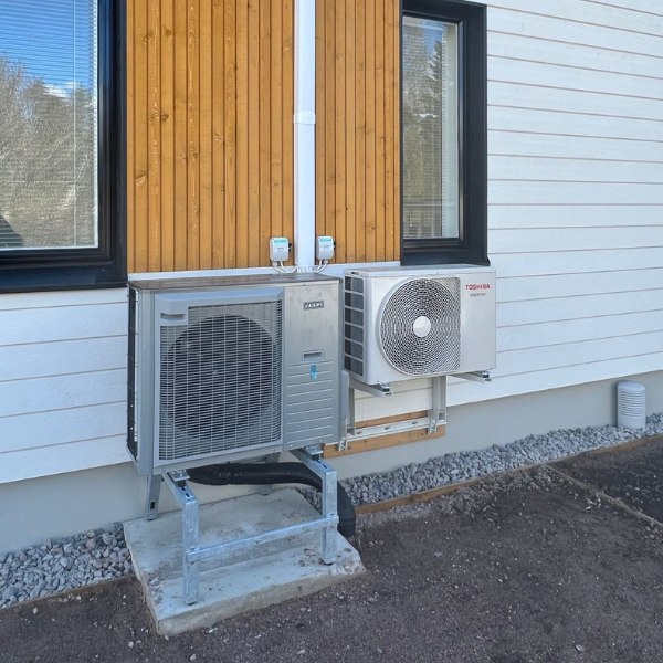 Sisältää sisä- ja ulkoyksikön asennuksen: